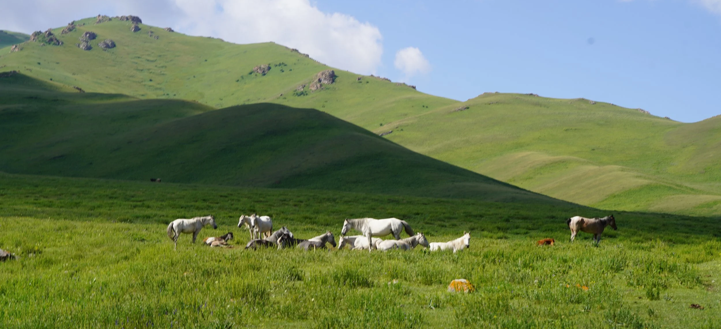 June: Animals are well fed and gorging on the new grass and having their young. We love this time of year as it’s when fields of wildflowers pop up all over the mountains. Yurts are surrounded by fields of forget-me-nots, perfect for lying in for sunny afternoon naps.